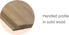 Both side textured laminated shutter with wooded edges and handle profile in solid wood for base shutters, eliminating the need for gola profile.